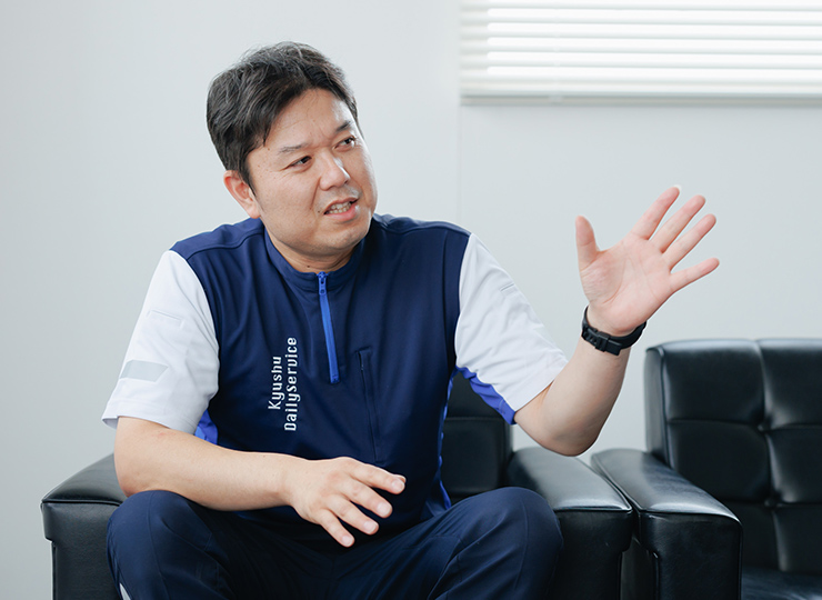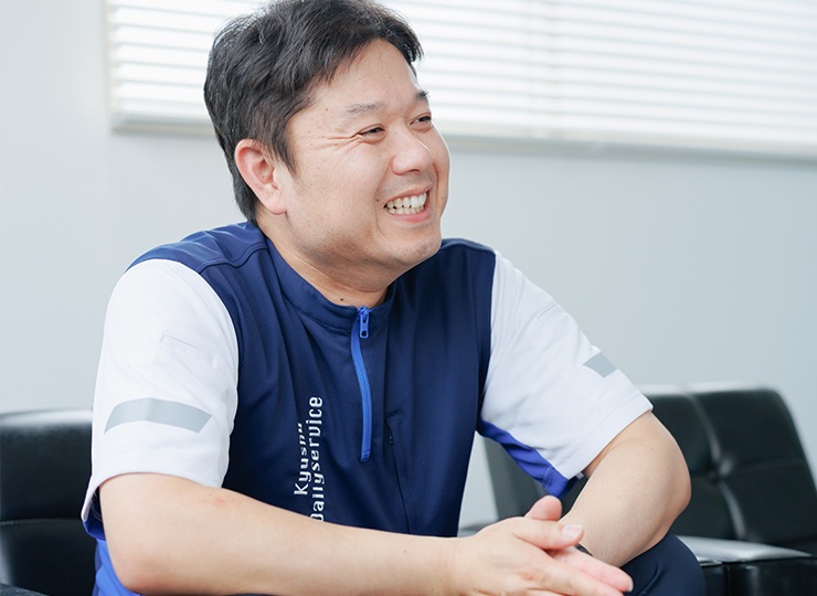 - 九州デイリーサービスを知ったきっかけは、入社前に派遣アルバイトのドライバーとして働いていたことです。その後、一度は別の運送会社に就職しましたが、「またうちで働いてみないか?」とお声がけいただき、私にとって働きやすい職場だと感じていたので、社員として戻ることを決意しました。